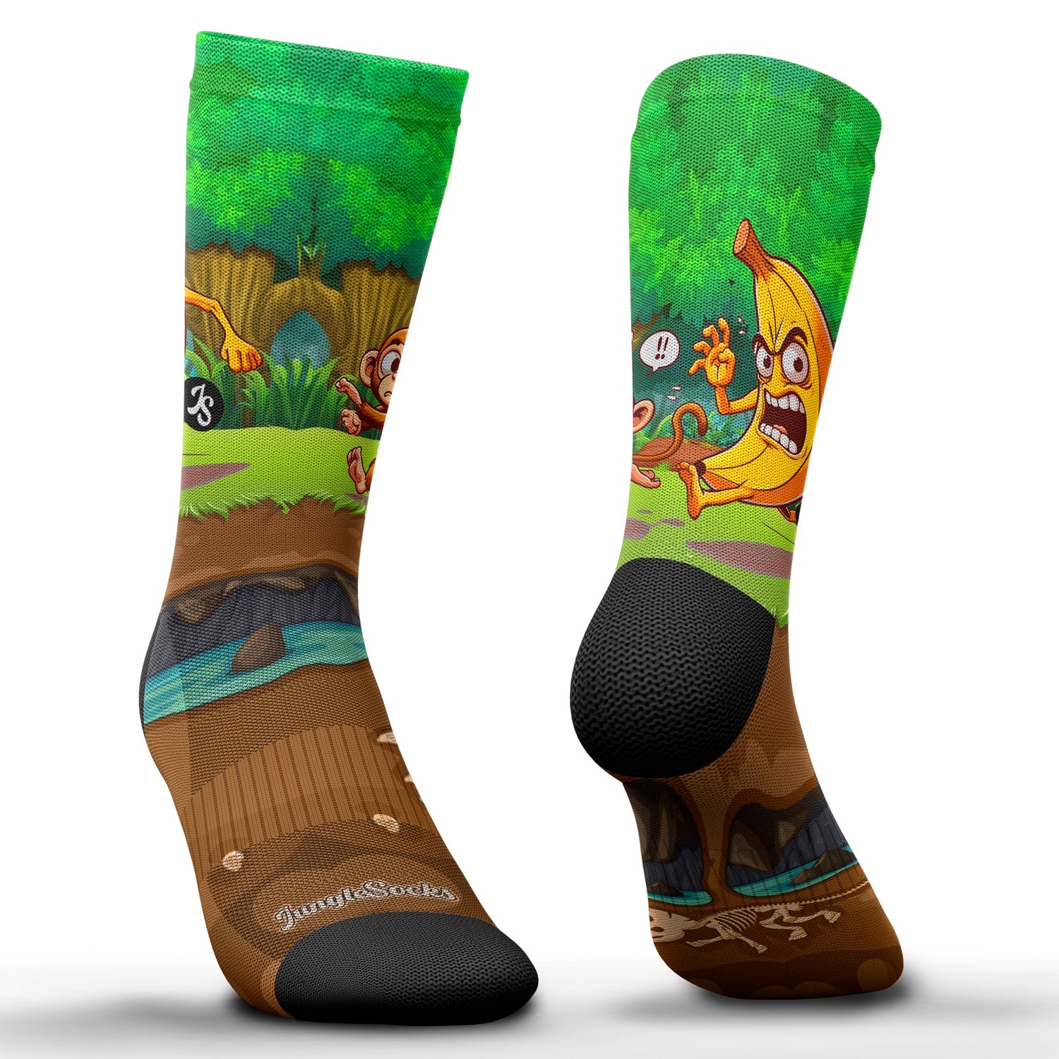 Mother Nature never saw this plot twist coming: a furious banana chasing a monkey through the jungle? Technical socks to make your feet the stars of the most tropical comedy in the ring, while staying dry and protected. Fruit justice has never been so fun... or so fresh.